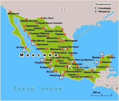 Карта курортов Мексики: